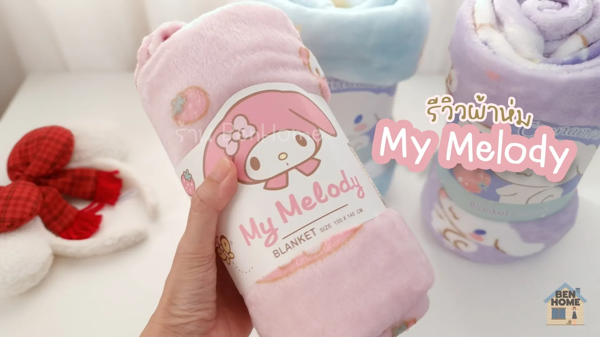 ผ้าห่มรุ่นนี้คือ ผ้าห่มมายเมโลดี้ มาเป็นม้วนแบบนี้เลย ขนาด 3 ฟุต หน้ากว้าง 100 cm. ยาว 140 cm. ก็เป็นผ้าห่มไซส์ M ของร้าน BenHome นะจ้ะ เป็นผ้าห่มลิขสิทธิ์แท้จาก Sanrio Distributed by Moshi Moshi ของแท้แน่นวล ดูได้จากป้ายและสายคาดผ้าห่ม
