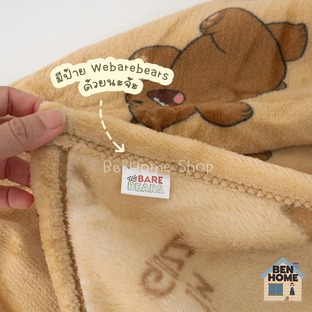 - ผ้าห่มนาโน ลายวีแบแบร์ (We bare bears) ขนาด 3.5 ฟุต ไซส์ 110 x 170 ซม. มีลายเดียวคือ น้ำตาลหมีกริซ (Grizz)