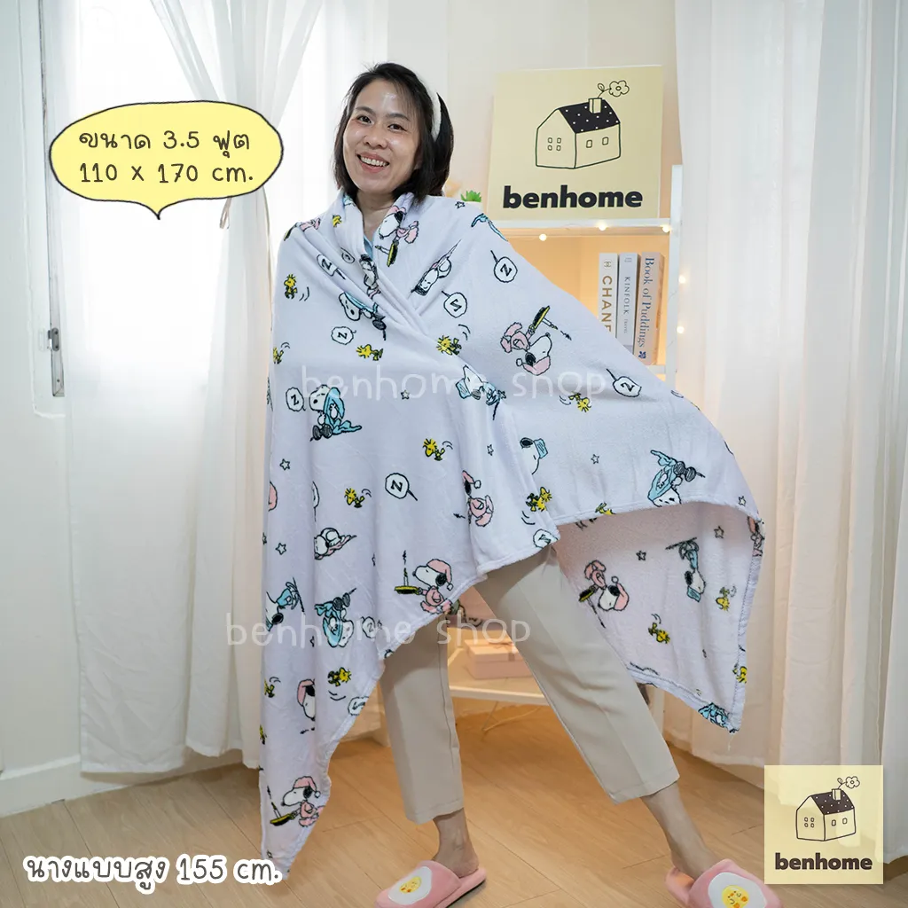 • ผ้าห่มนาโนลาย Snoopy (สนูปปี้) ลิขสิทธิ์แท้ Peanuts Worldwide Distributed by Moshi Moshi